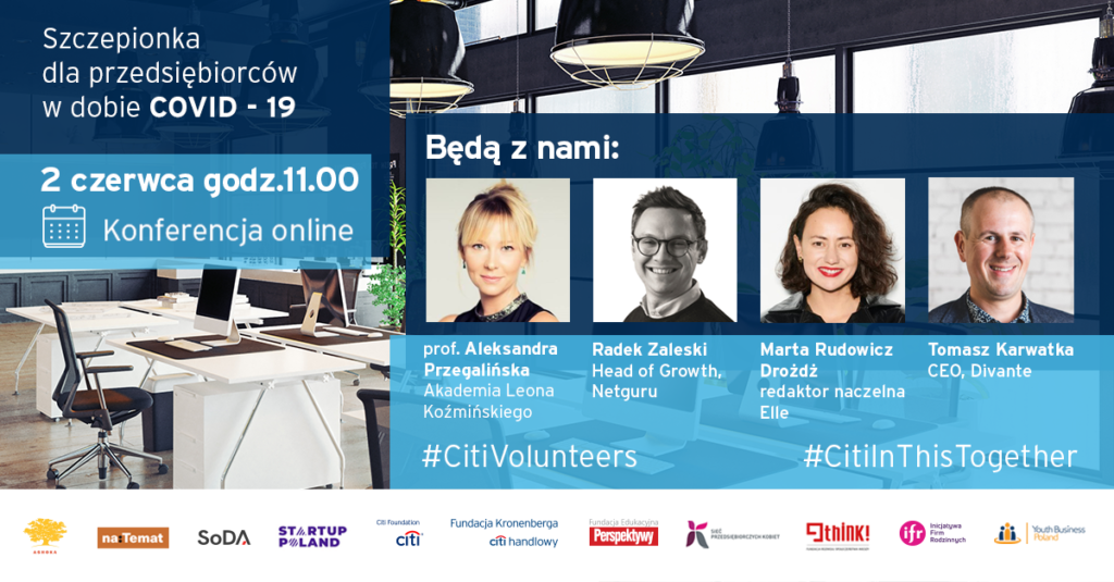 2 czerwca 2020 r. w godz. 11.00-15.00 zapraszamy wszystkich przedsiębiorców do udziału w bezpłatnej konferencji “Szczepionka dla przedsiębiorców w dobie COVID-19 – FIRMA WIRUSOODPORNA” Będziemy mówić o: e-commerce jako szczepionce na COVID-19 sztuce zarządzania rozproszonymi zespołami budowaniu relacji z klientami w świecie wirtualnym Poznamy również Finalistki programu akceleracyjnego Biznesu w Kobiecych Rękach oraz Mikroprzedsiebiorców 2019 […]