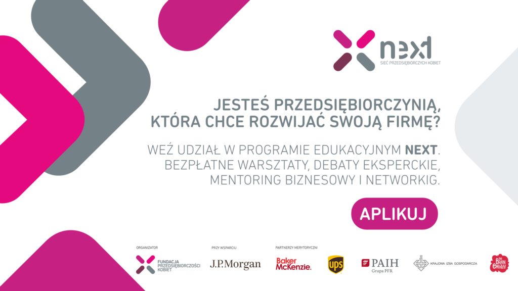 Fundacja Przedsiębiorczości Kobiet przy wsparciu J.P. Morgan, rekrutuje do programu edukacyjnego Next. Przedsiębiorczynie z Mazowsza, mają wyjątkową możliwość bezpłatnie pogłębić swoją wiedzę i rozwinąć kompetencje biznesowe. Z raportu Deloitte “Wpływ pandemii na perspektywy zawodowe kobiet w biznesie” wynika, że blisko 82 proc. badanych kobiet na świecie i 76 proc. w Polsce, uważa, że pandemia zaszkodziła […]